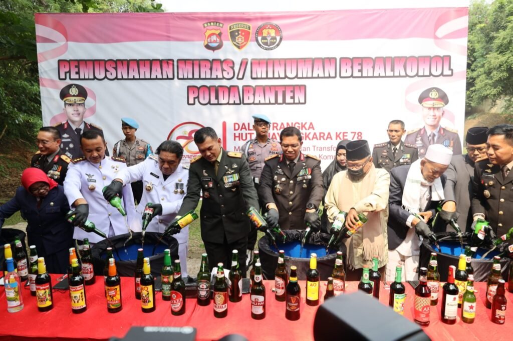 CAKRA³.COM, SERANG – Polda Banten memusnahkan puluhan ribu minuman beralkohol hasil Kegiatan Rutin Yang Ditingkatkan (KRYD) tahun 2024 di wilayah hukum Polda Banten.