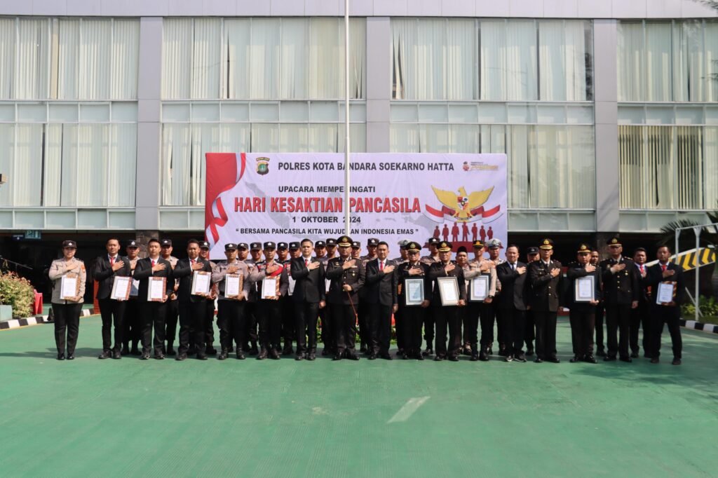 Penghargaan diserahkan langsung oleh Kapolresta Kombes Pol Roberto Pasaribu dalam upacara peringatan ‘Hari Kesaktian Pancasila’ di lapangan apel Mapolresta Bandara Soetta pada Selasa 1 Oktober 2024 pagi.