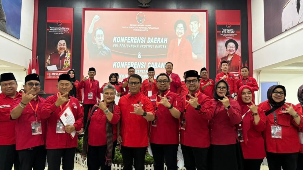 CAKRA³.COM, SERANG – Dewan Pimpinan Daerah Partai Demokrasi Indonesia Perjuangan (DPD PDIP) Provinsi Banten menggelar Konferensi Daerah (Konferda) dan Konferensi Cabang (Konfercab) serentak kabupaten/kota se-Provinsi Banten, Jumat (12/12/2025). Kegiatan yang berlangsung di GSG Hj. Megawati Soekarnoputri, Kota Serang, itu mengusung tema “Plasma Nutfah untuk Ibu Pertiwi”.